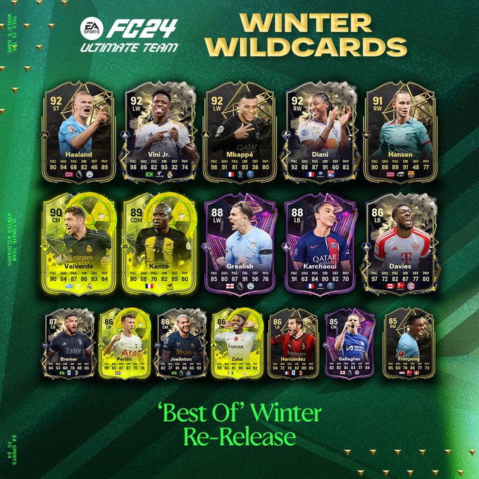 This re-release promotion gives EA FC 24 Ultimate Battle players a second chance to get their hands on the best cards of their favorite players. The Best Of Winter promotion will feature star players from Radioactive, Thunderstruck, and Triple Threat promotions, as well as some players from his Team of the Week.