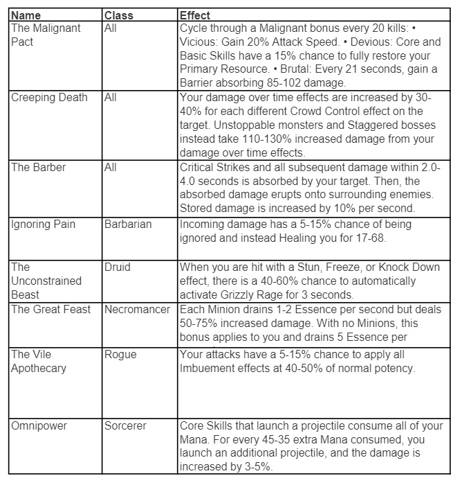 Diablo 4: Malignant Hearts and effects description