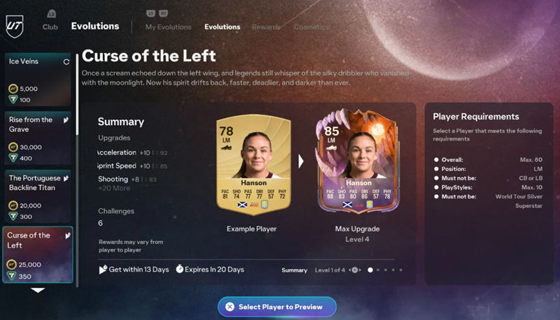 All the Challenges and Upgrades in EA FC 26 Curse of the Left Evolution