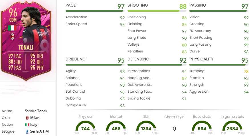 Sandro Tonali is delivered as a 'FUTTIES Favorite'. The new card is crazy as