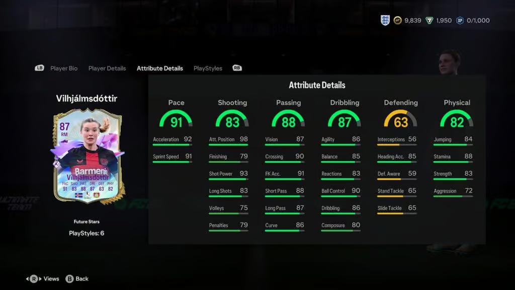 Among those new cards added was a 87 OVR Future Stars Lea Karolina Vilhjalmsdottir, a card with six PlayStyles and 4-Star Expertise Moves and Frail Foot. This card can be gotten through Goals.