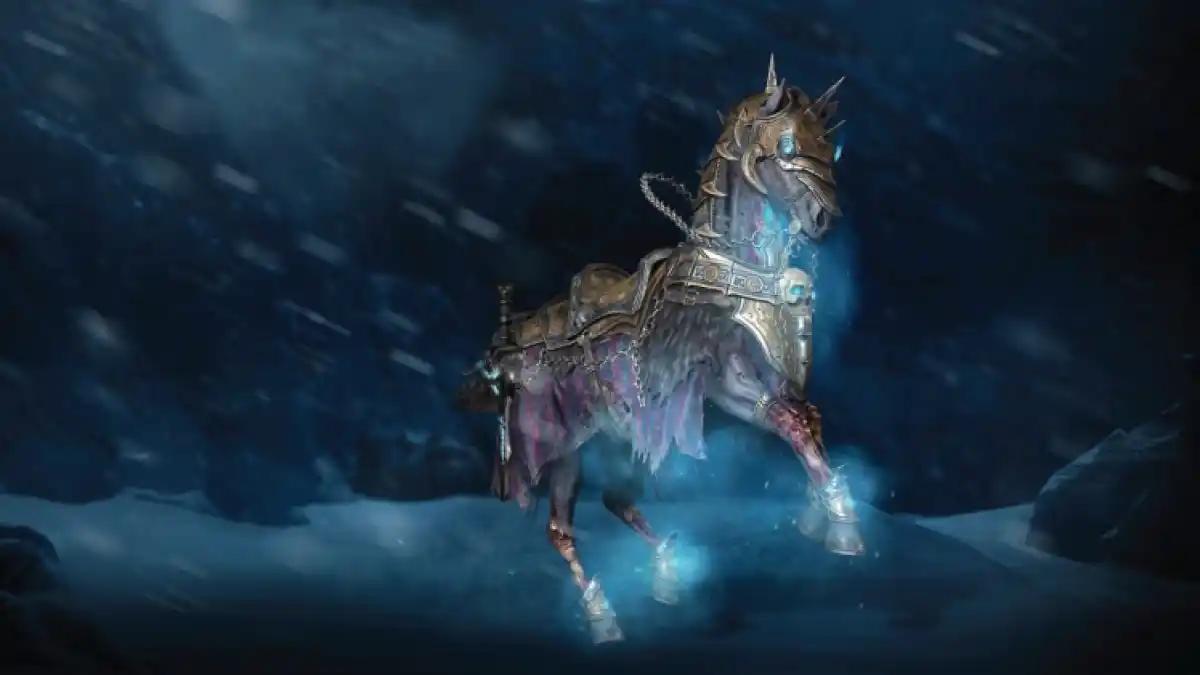 The Invincible Guardian is the loyal mount of the Lich King in World of Warcraft. It may not fly at all, but it's a great aspect that incorporates the aesthetics of freeze and death. After all, that's what the Lich King is all about. Additionally, the mount will come with the Lich King's helmets and weapons: Helm of Domination and Frostmourne. Now, all we need is the Lich King himself. But to get Invincibility in Diablo 4, you have to spend 2,500 Platinum, which is $23.00.