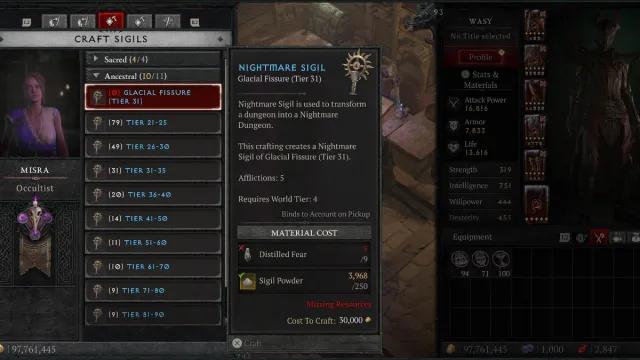 Mystic Bend in Diablo 4 is the one who can create the Ice-Cracked Nightmare Seal. Go to the Ancestral tab and check the level 31 option at the top of the list. This item requires 9 Dread Distillate and 250 Sigil Powder to craft. Each one has five different pains that all lead to the Beast in the Ice.Once you've used the Glacial Fissure Nightmare Mark, you can head to your hideout and eliminate your enemies as normal. Only then will the door on the other side be opened. You can just walk into the arena. Once inside, you don't have to worry about extra items like other bosses.
