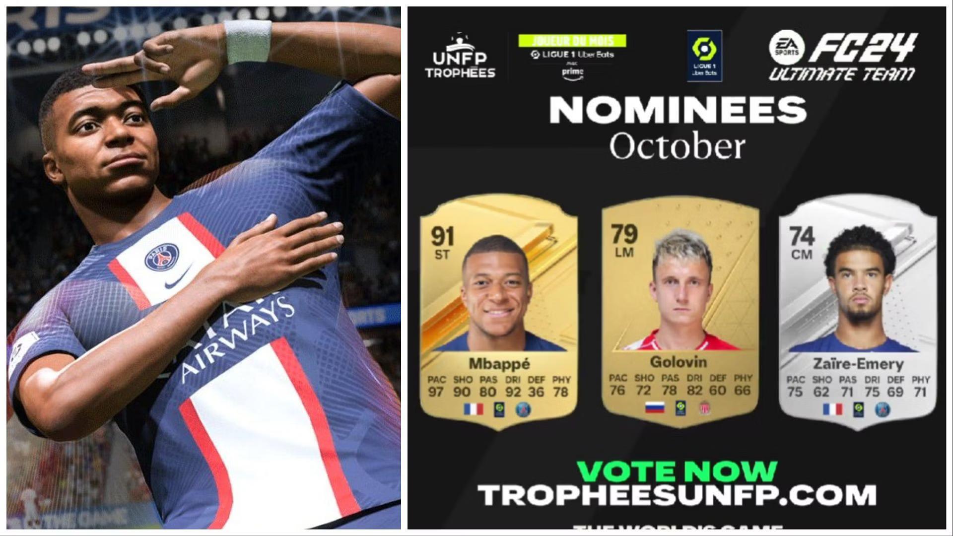 EA Sports has announced the shortlist for October's Ligue 1POTM, with Kylian Mbappé winning the SBC Award for EA FC 24. The French superstar is undoubtedly the most famous player in Ligue 1 at the moment and one of the most highly rated and strongest players on the virtual pitch.