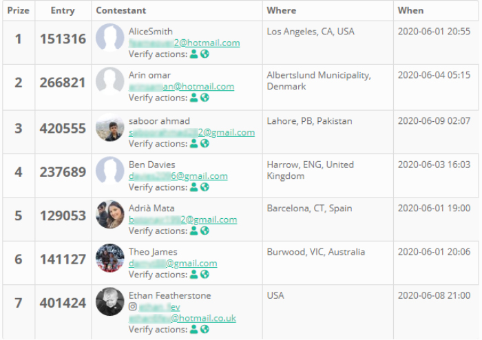 The 7 winners are randomly chosen by the third party Gleam according to their entries as long as the event end, and we will check if the participation of the winners is effective, such as whether or not you really follow FIFACOIN socials. Now let’s check the prizes and winners!