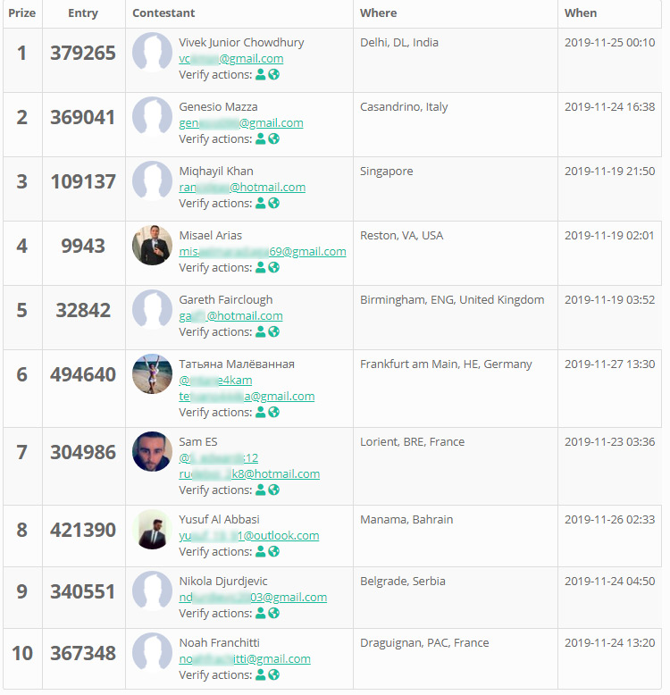 The winners are randomly chosen by the third party gleam.io according to their entries as long as the event ends. They are: